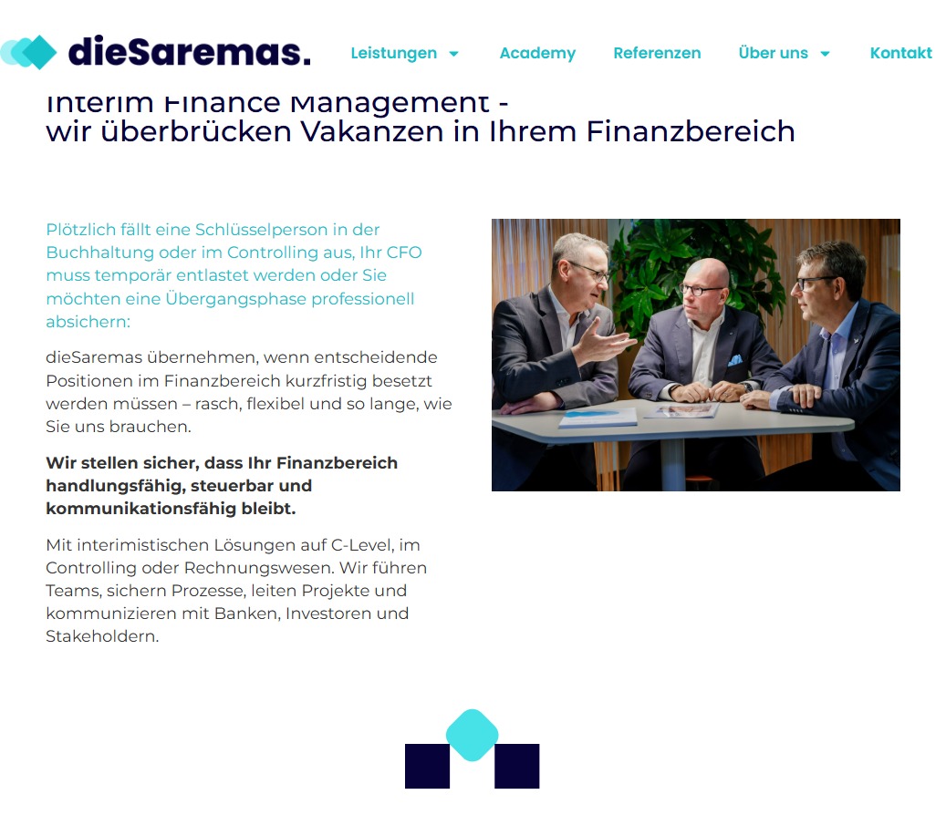 Die Website strahlt die Ruhe und die Erfahrung eines erfahrenen CFOs aus.